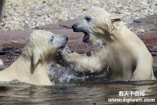 北极熊双胞胎阿留申和Gregor是在纽伦堡,德国动物公园最新景点。
